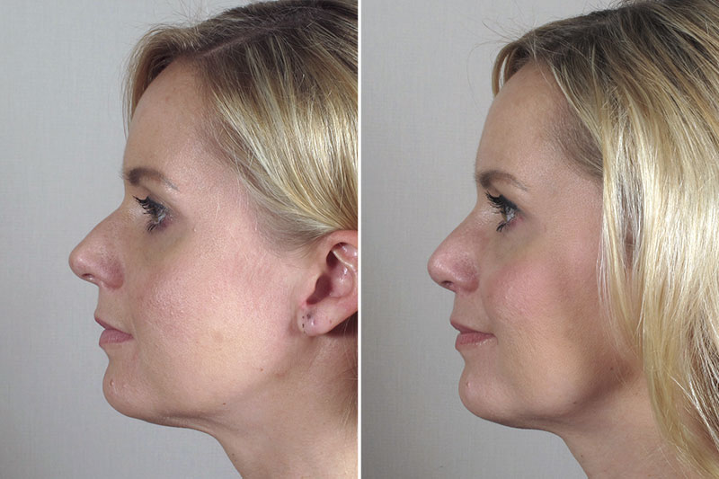 This 29 year old, referred to Dr. Parker by a former patient, requested improvement in the appearance of her nose as well as the obstructed breathing on her left side. The patient sustained blunt trauma to her nose one year earlier accompanied by a lot of bleeding. No treatment was obtained. Subsequently she noted a bump appear on her nose as well as progressive worsening of breathing on her left side. She asked Dr. Parker to remove the bump, refine her broad nasal tip and correct her breathing obstruction. Dr. Parker performed an open rhinoplasty. During this procedure, he removed the bony cartilaginous dorsal hump, performed infractures to appropriately narrow the upper portion of the nose, refined the tip cartilage with sutures and re positioned the dislocated septum back into its proper location as seen on the “worms eye view”. The patient was pleasantly surprised at how quickly she recovered. She says her breathing has returned to normal. She loves the improved but natural appearance of her nose.