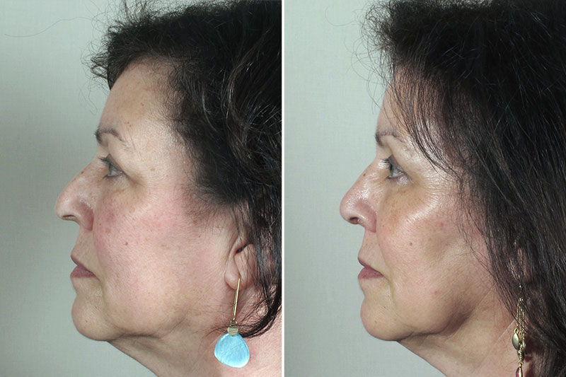 This 61 year old presented to Dr. Parker with concerns about the appearance of her nose and some difficulty breathing. She was specifically bothered by the appearance of her dorsal hump, the crooked look of her nose, her asymmetric tip which dipped downward with smiling and persistent breathing difficulties on the right side of her nose, as well. During the review of the patient’s computer imaging, the patient expressed her concern about not losing her Native American identity. She and Dr. Parker carefully reviewed her computer imaging and made plans to avoid this from occurring. During the patient’s open rhinoplasty surgery, Dr. Parker conservatively reduced the patient’s bony cartilaginous hump, in accordance with her computer imaging. Infractures were appropriately performed to narrow the nose. The patient’ s crooked nose was straightened and the nasal tip conservatively refined. The patient’s breathing obstruction was corrected with removal of the deviated portion of her septum. The patient was delighted with the ease of her recovery as well as the postoperative appearance of her nose. She loves the significantly improved look of her nose, which retains her ethnicity. She appreciates Dr. Parker listening so carefully to her concerns, mapping out a plan to address them and performing the surgery accordingly.