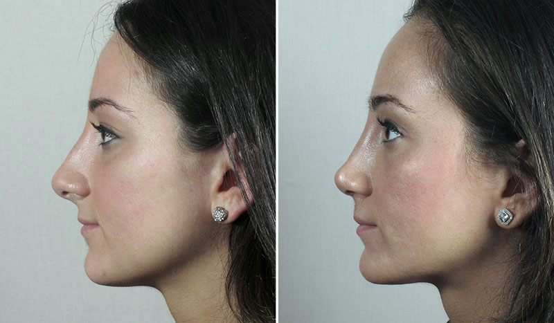 This 22 year old asked Dr. Parker to improve the appearance of her nose. She was bothered by its crooked appearance, including the dorsal hump as well as her bulbous tip. Dr. Parker performed an open rhinoplasty which reduced the patient’s bony cartilaginous hump, straightened her crooked nose, and refined her nasal tip. The patient is very happy with her straighter, more refined, yet natural looking nose.