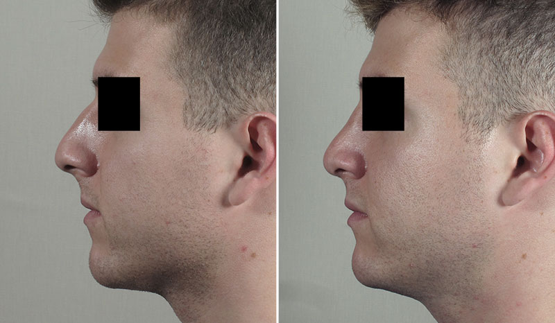 This 23 year old was referred to Dr Parker by another patient requesting improvement in the appearance of his nose. He asked that his dorsal hump be reduced, his tip made less bulbous and his obstructed breathing corrected. Dr Parker performed an open rhinoplasty during which he reduced the bony cartilaginous hump, performed infractures to narrow the open roof, refined the appearance of the patient’s bulbous tip and opened his airways with septal reconstruction and partial inferior turbinectomies. The patient was delighted with his recovery. He loves the natural appearance of his nose and says his breathing is much improved.