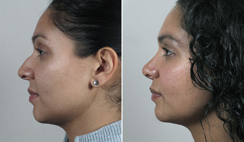 This 27 year old was referred to Dr. Parker by another patient asking for correction of her crooked nose, dorsal hump, bulbous tip and wide nostrils. Dr. Parker performed an open rhinoplasty, straightening her crooked nose, taking down the bony cartilaginous hump, infractures to appropriately narrow this part of the nose, a tiplasty to refine her bulbous tip and alar base resections to reduce the size of her nostrils. Postoperatively, the patient experienced very little bruising and no pain. She loves her “new” nose and comments how it looks so natural and blends in well with the rest of her face.