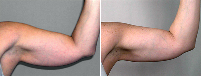 This 41 year old patient asked for a more slender appearance of her arms. She felt self conscious about them in certain clothes. The patient is 5 feet 4 inches tall and weighs 135 pounds. SAFE liposuction was performed by Dr. Parker on both arms, removing 275 cc of fat from each side. Postoperatively, the patient was much more self- confidant with the improved contour of her arms.