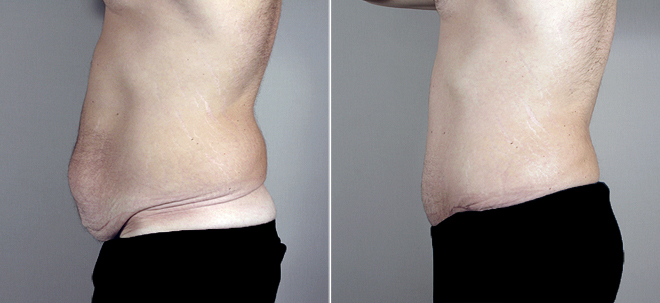 • Men with loose abdominal skin and stretch marks would get a better result with an abdominoplasty (tummy tuck)